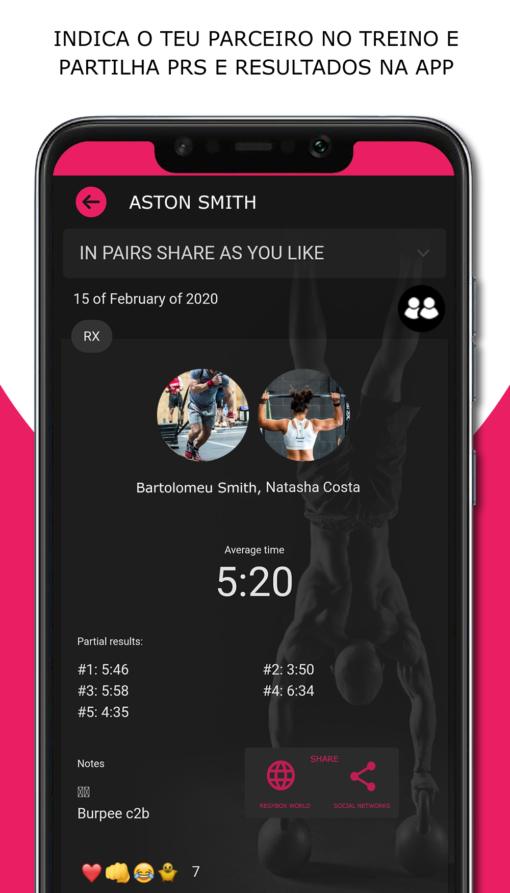 Crie o plano de aula/treino com exercícios e WODS pré-configurados. Associe movimentos e vídeos. Várias formas de registo de resultados (individual, pares, equipas, tempo, reps, rondas+reps, etc).